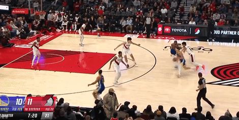 第一节开拓者克林根拿下9分,勇士斯蒂芬-库里拿下10分,首节战罢开拓者30-22领先勇士