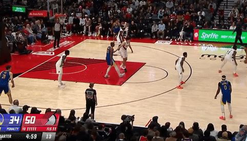 第二节开拓者谢登-夏普拿下10分,勇士昆顿-波斯特拿下6分,半场结束开拓者61-56领先勇士