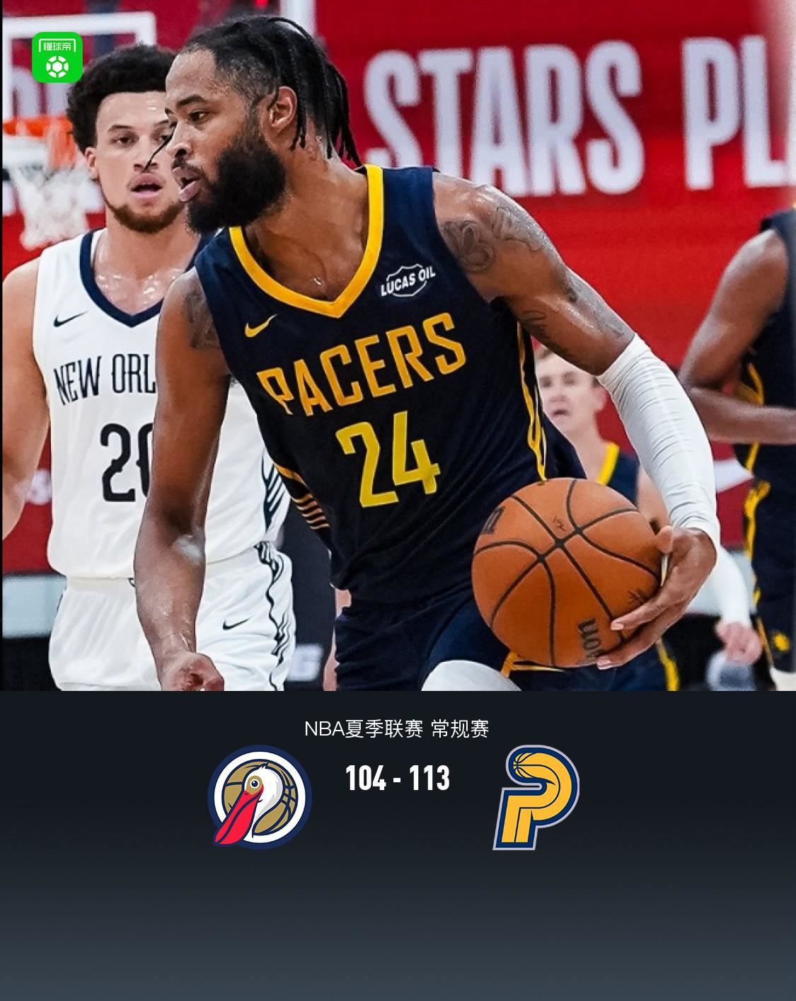 北京时间7月19日NBA夏季联赛 常规赛,新奥尔良鹈鹕对阵印第安纳步行者。半场鹈鹕45-56步行者,最终鹈鹕104-113步行者。