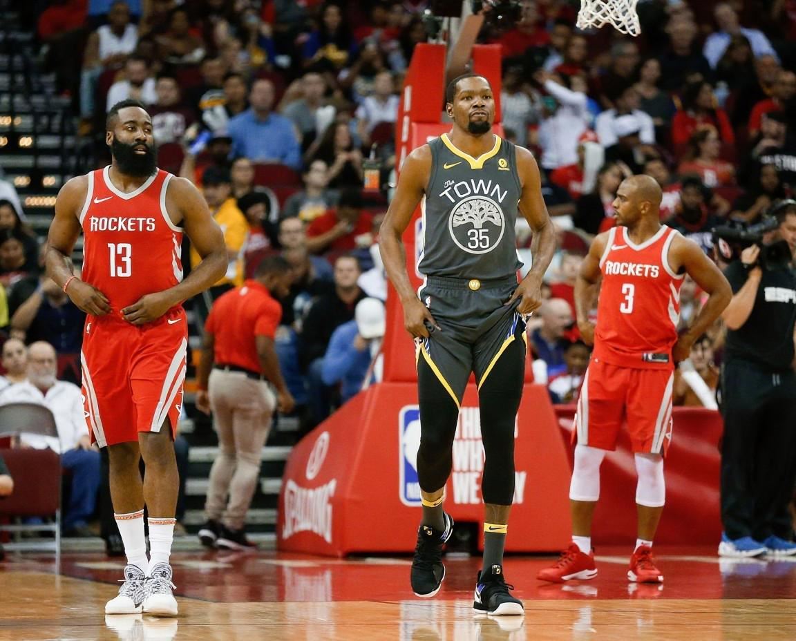 火箭队在季后赛接连输给勇士的这两个赛季中,勇士主力前锋正是今夏来到火箭的杜兰特。