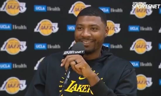 北京时间今日,湖人正式官宣新援马库斯-斯马特加盟球队,同时斯马特也接受了加盟湖人队以来的首次媒体采访。