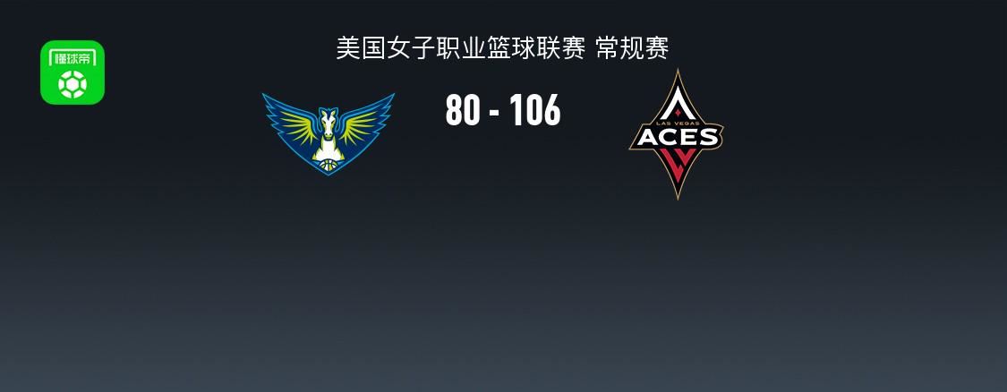 北京时间7月28日美国女子职业篮球联赛 常规赛,达拉斯飞翼对阵拉斯维加斯王牌。半场飞翼44-56王牌,最终飞翼80-106王牌。达拉斯飞翼阿里克-奥贡鲍尔18分3板4助,海莉·琼斯15分3板3助;拉斯维加斯王牌杰基-杨24分3板8助,朱厄尔-洛伊德20分1板2助。