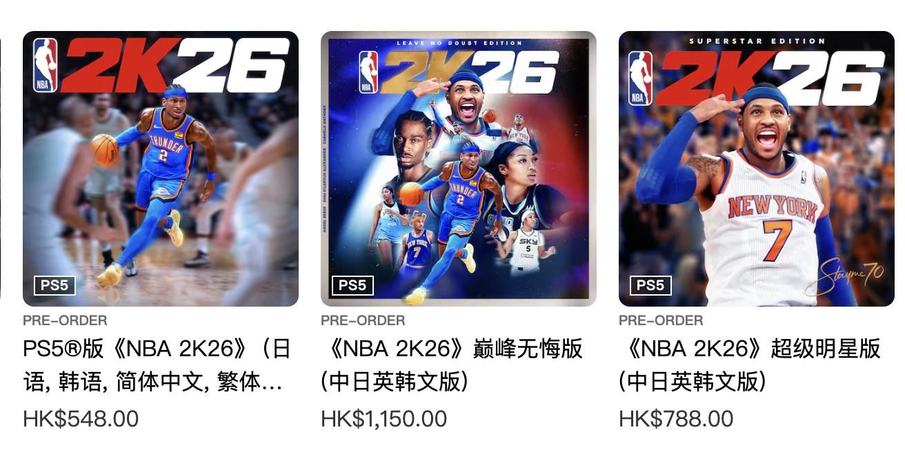 你会入手吗?NBA2k26最贵版本在PS港服售价为1050元