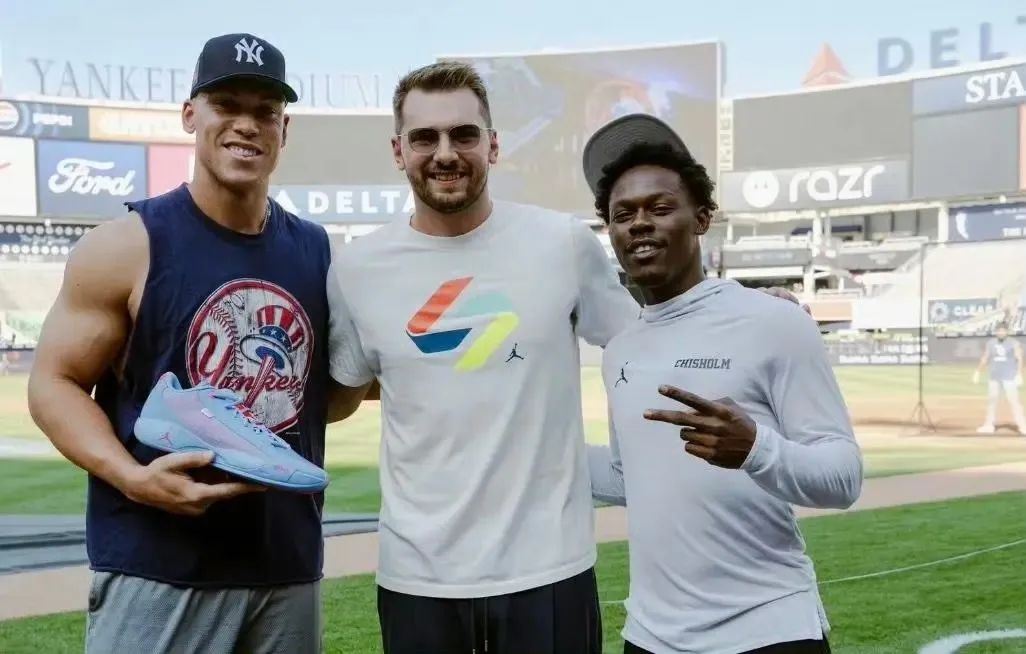 这是今天观看美职棒大联盟纽约洋基队与坦帕湾光芒队比赛的东契奇。