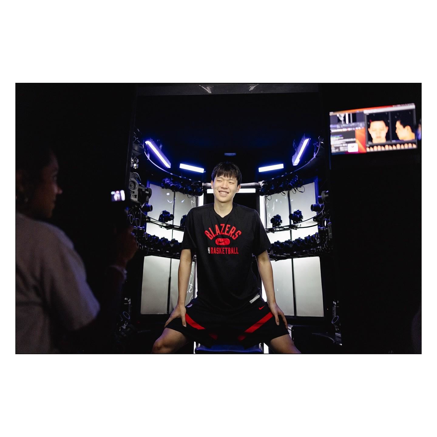北京时间8月1日,开拓者摄影师bruceely晒出了杨瀚森在接受2K扫脸面补的照片。