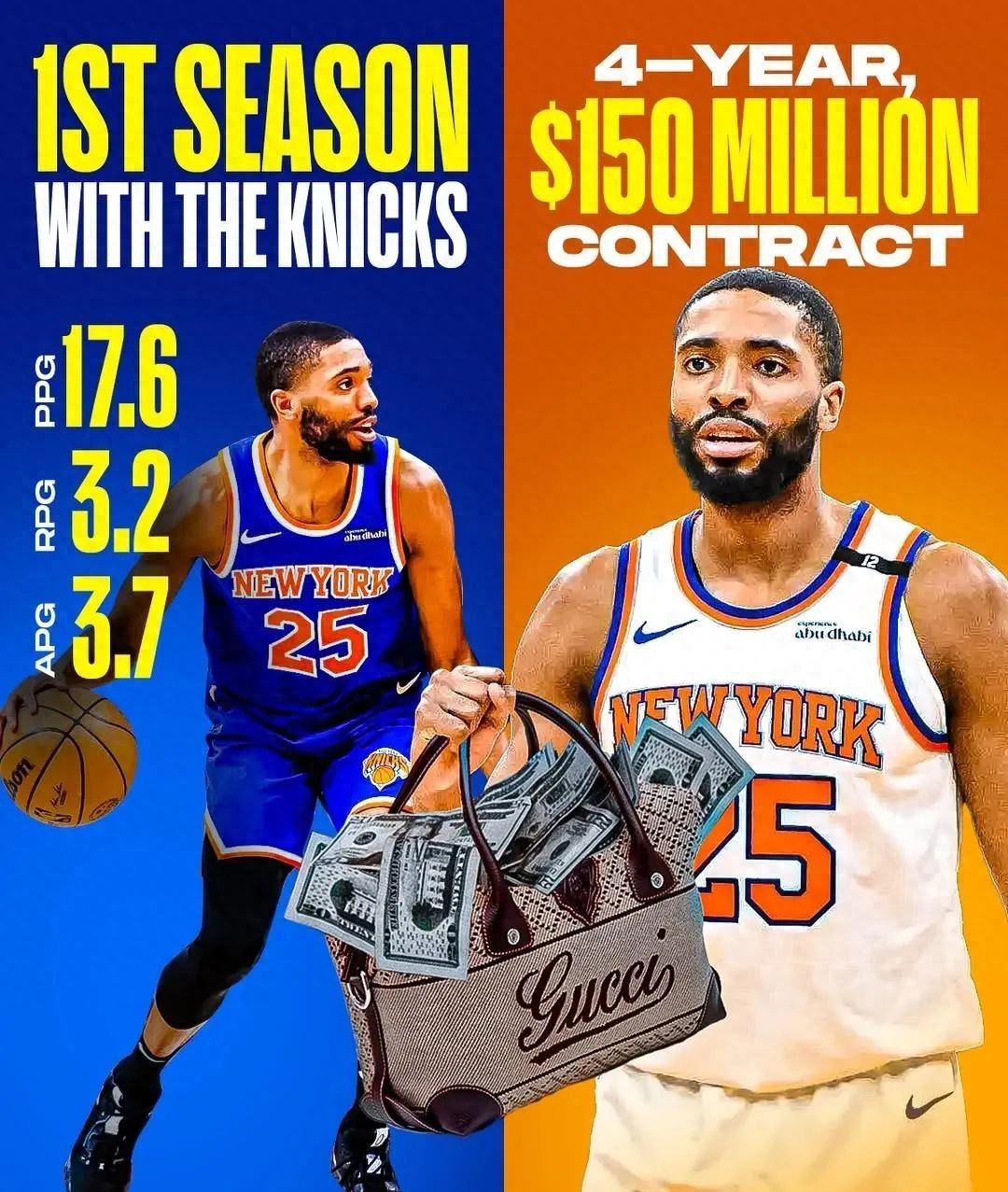 去年夏天, 布伦森以4年1.565亿的合同,和尼克斯完成续约。