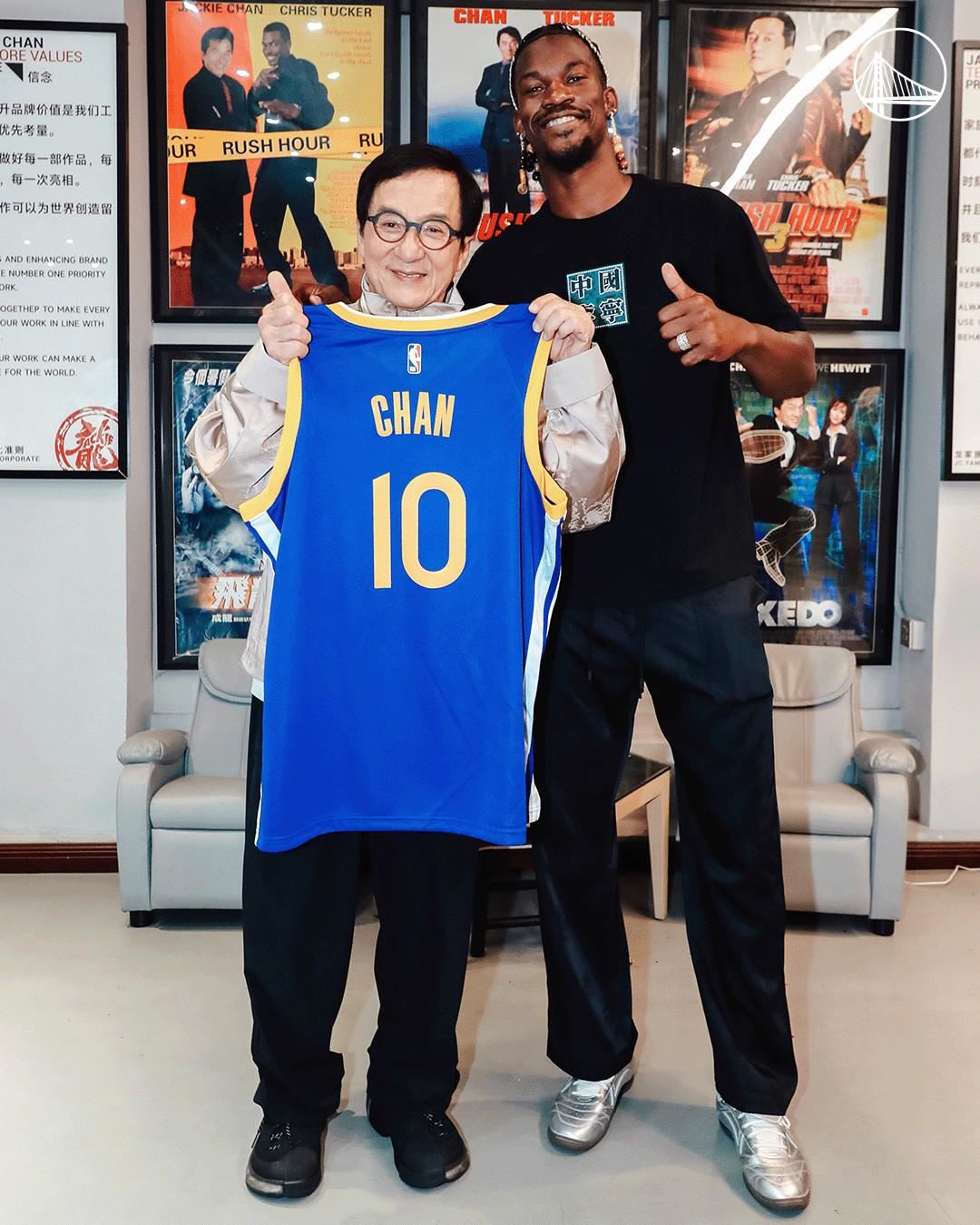 成龙与巴特勒“切磋”武艺,并获赠勇士10号球衣