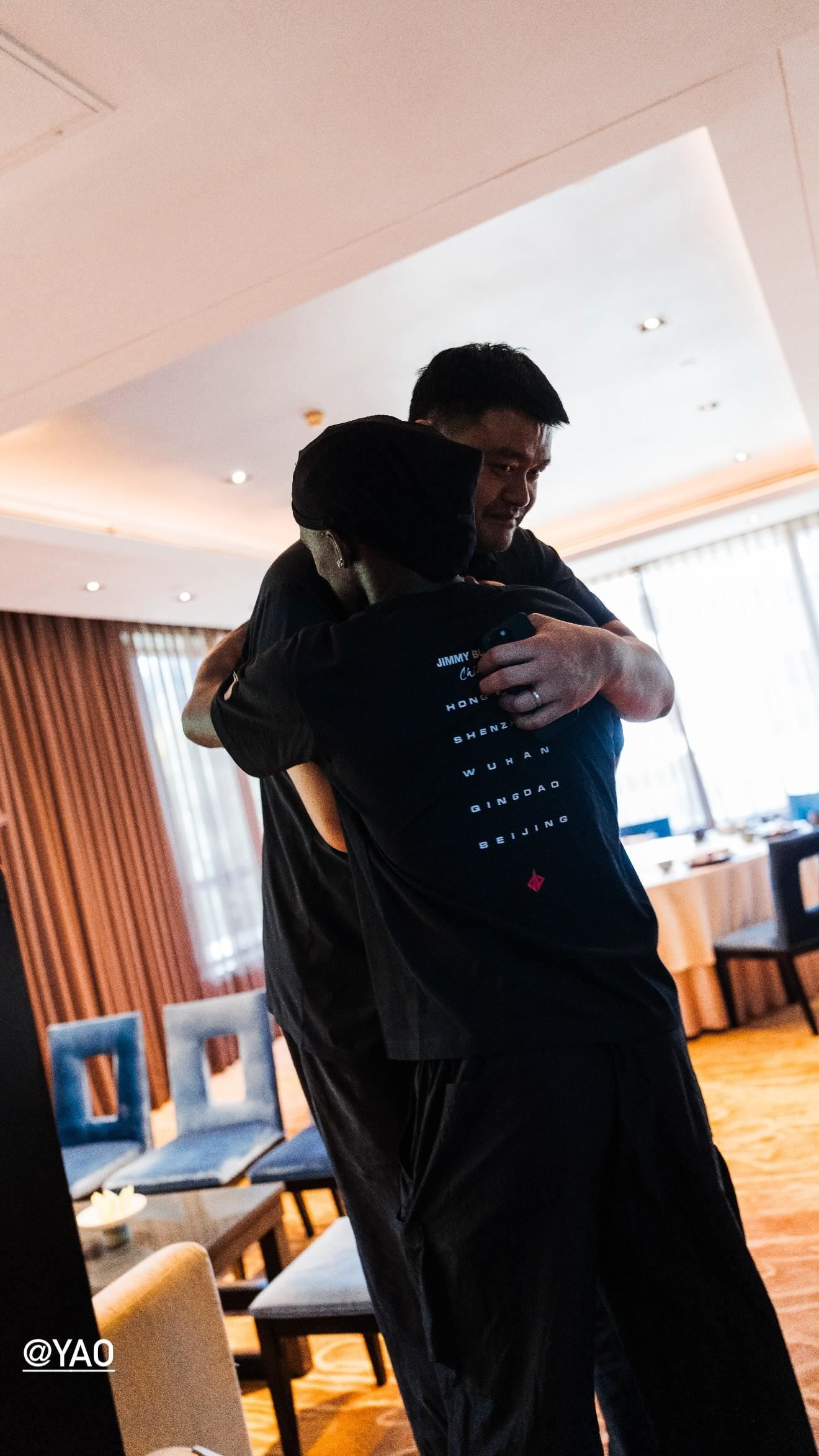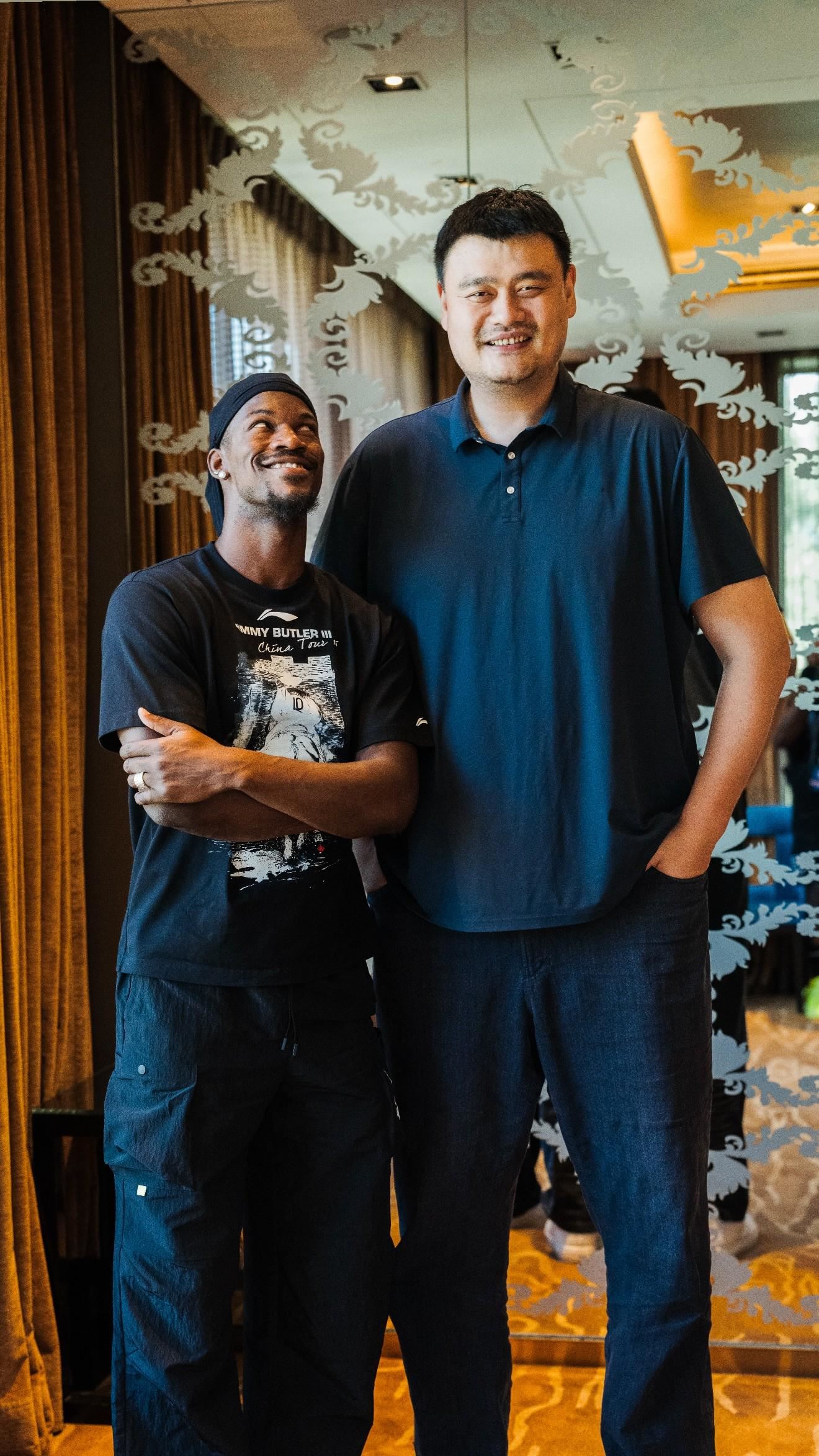 在合影中能看到,身高2.01米的巴特勒站在姚明身旁显得格外“娇小”。