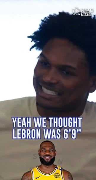 “因为勒布朗大概6英尺9英寸(约206厘米)。是的,我们以为勒布朗就是6英尺9英寸。”