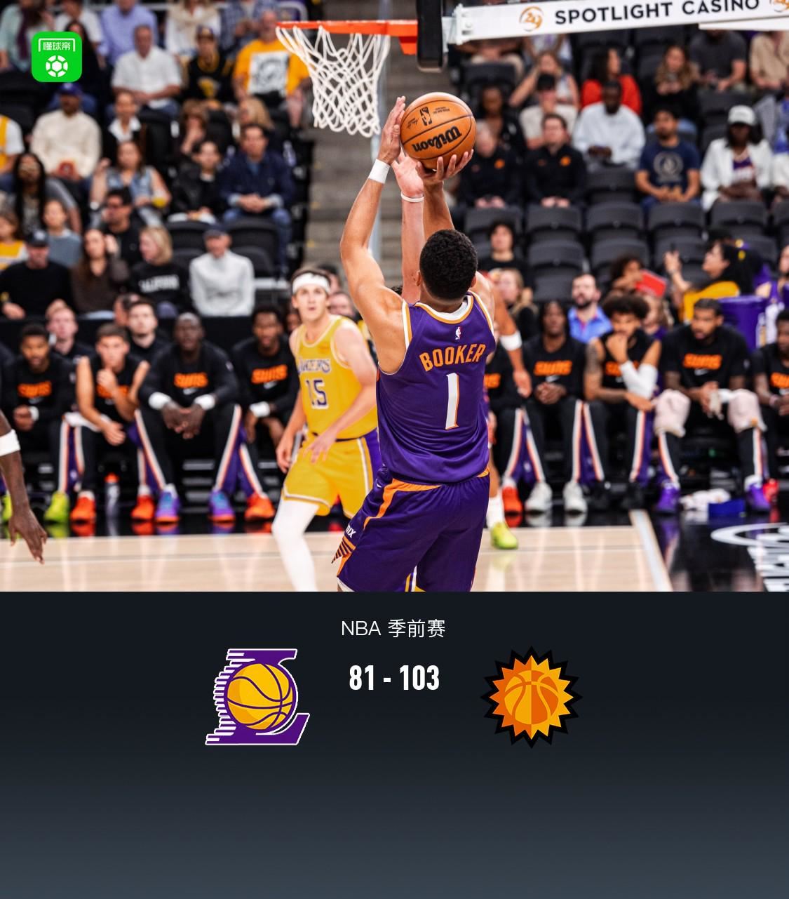 太阳103-81大胜湖人,布克24+7,里夫斯20分
