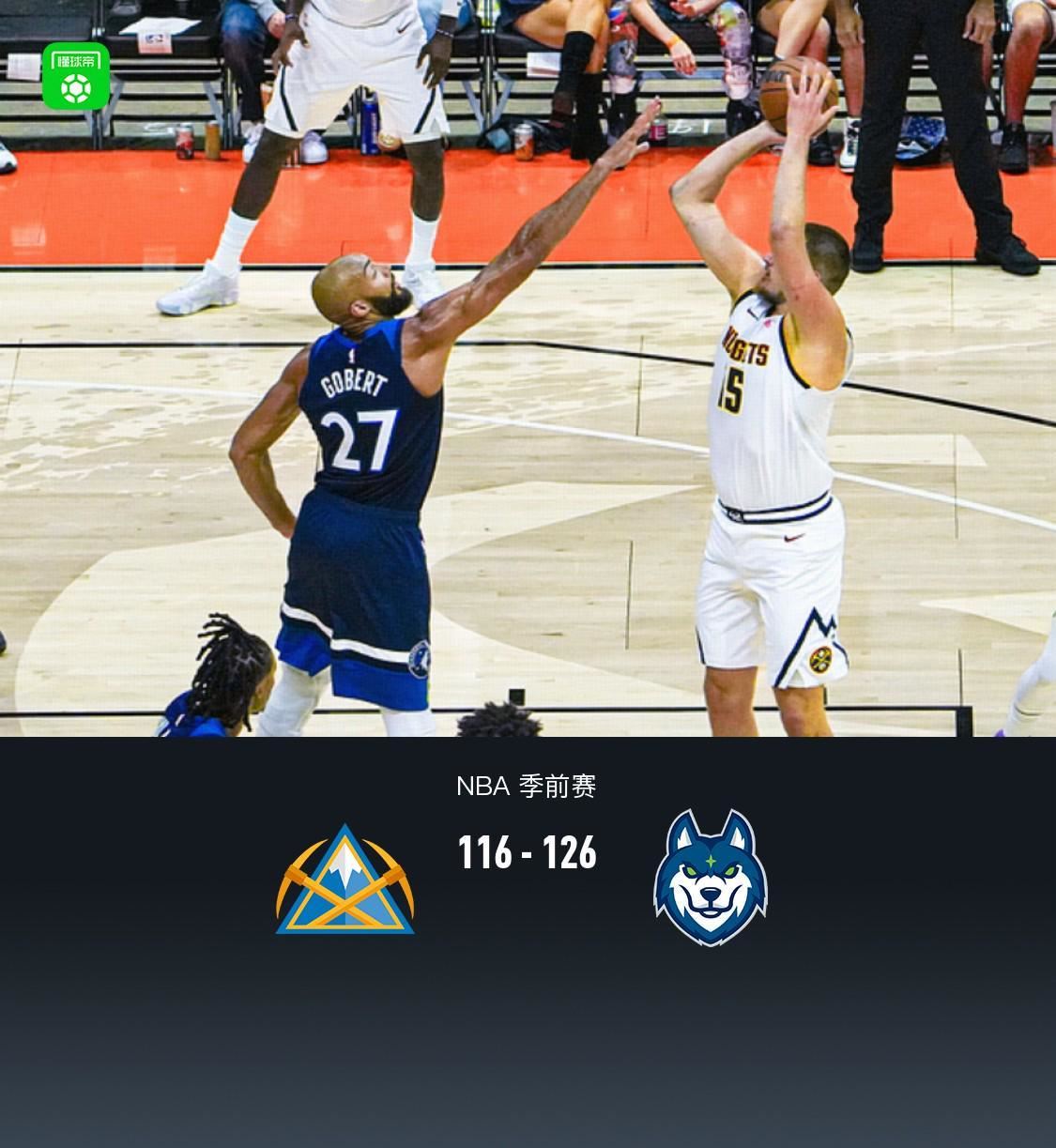 北京时间10月5日NBA 季前赛,丹佛掘金对阵明尼苏达森林狼。半场掘金63-72森林狼,最终掘金116-126森林狼。