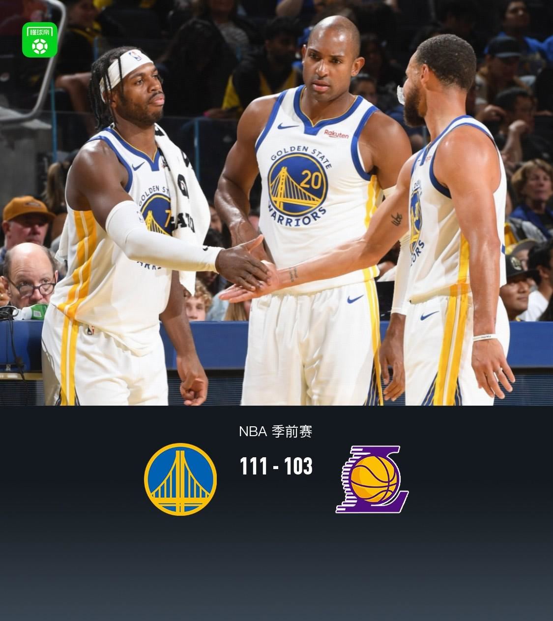 勇士111-103湖人,库里14分,穆迪19分,文森特16+5