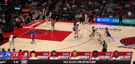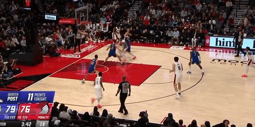 第四节开拓者克里斯-穆雷拿下4分,勇士帕特-斯宾塞拿下7分,最终开拓者111-118不敌勇士