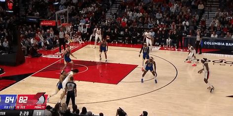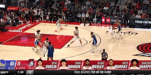 第二节开拓者谢登-夏普拿下10分,勇士昆顿-波斯特拿下6分,半场结束开拓者61-56领先勇士