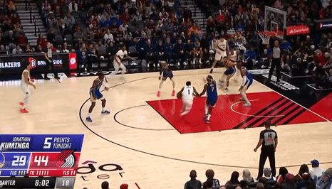 第一节开拓者克林根拿下9分,勇士斯蒂芬-库里拿下10分,首节战罢开拓者30-22领先勇士