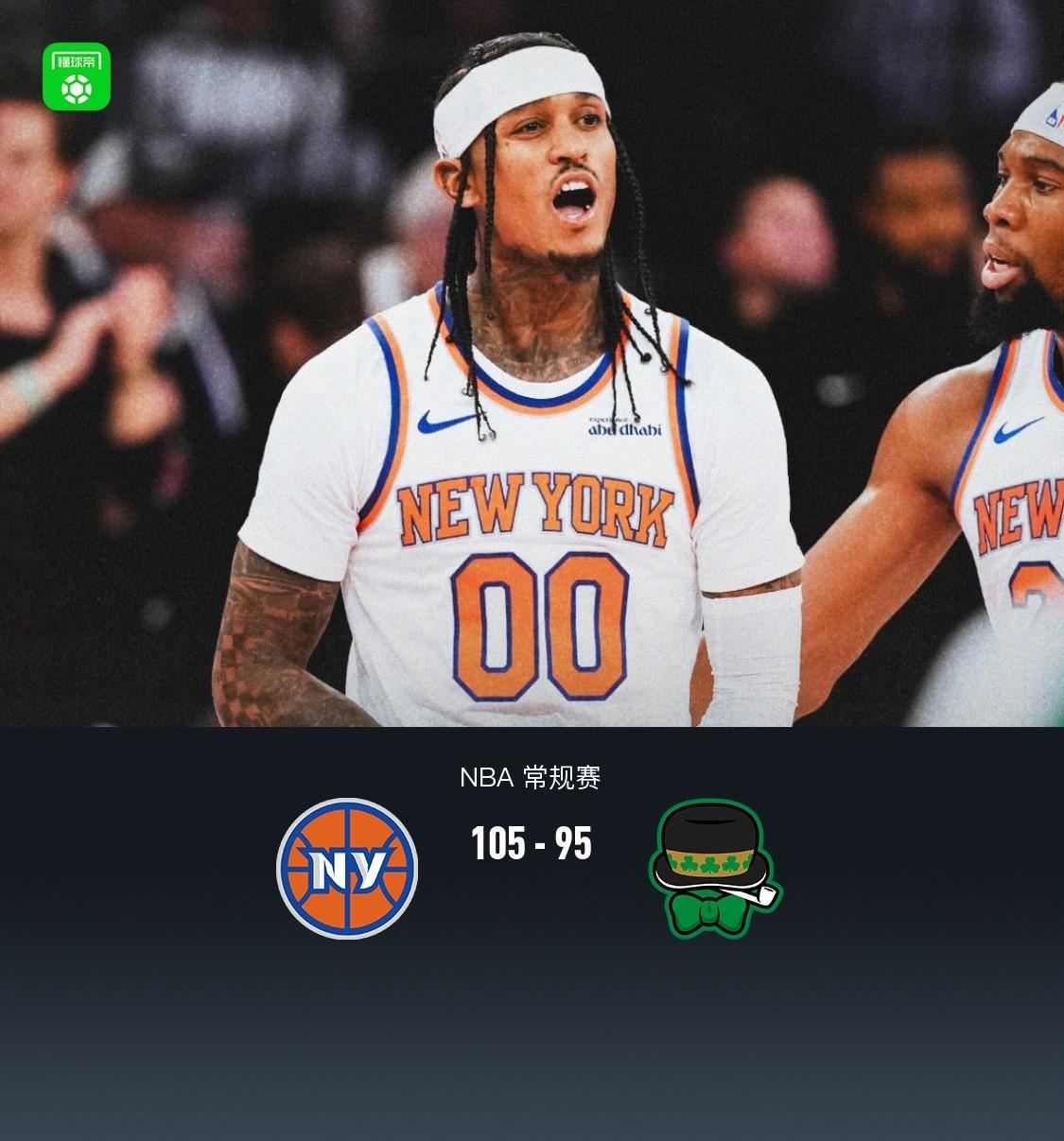 第四节尼克斯布伦森拿下12分,凯尔特人德里克-怀特拿下10分,最终尼克斯105-95战胜凯尔特人