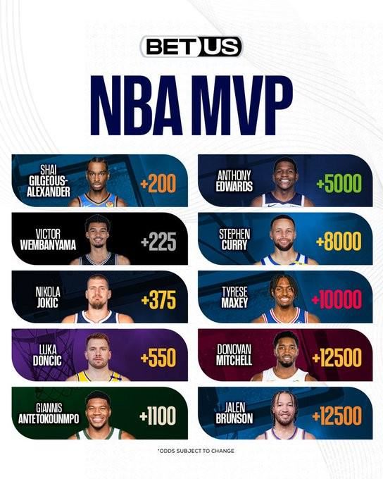 NBA新赛季MVP赔率:亚历山大居首,文班亚马小幅落后位居次席