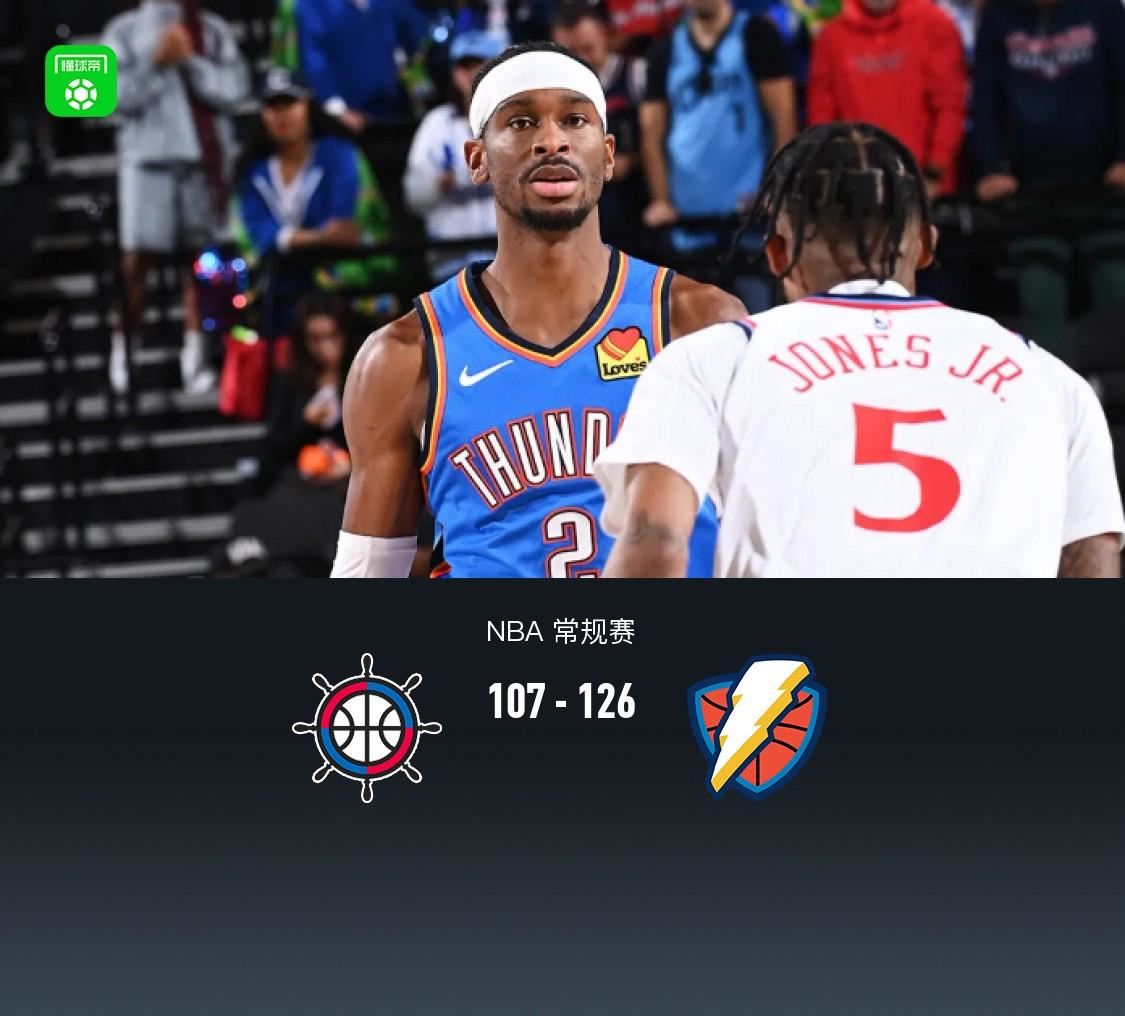 雷霆126-107大胜快船迎8连胜,亚历山大30+12,哈登25分下半场3分