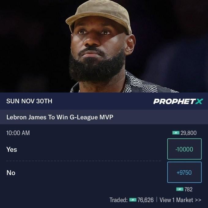 博彩开盘詹姆斯是否能夺G联赛MVP,夺MVP概率高达99%