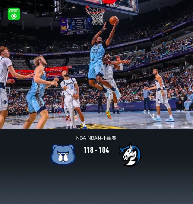 北京时间11月8日NBA NBA杯小组赛,孟菲斯灰熊对阵达拉斯独行侠。半场灰熊74-51独行侠,最终灰熊118-104独行侠。