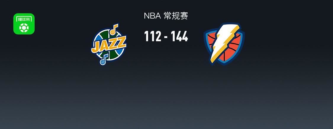 第四节爵士森萨博拿下7分,雷霆卡鲁索拿下6分,最终爵士112-144不敌雷霆