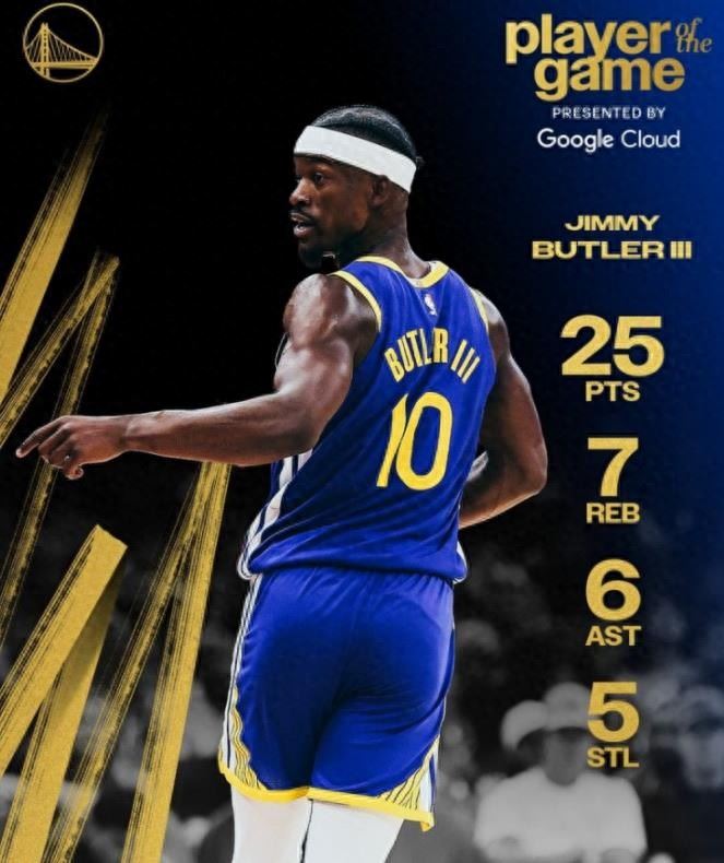 NBA季后赛第一轮,勇士客场95-85击败火箭。此役,巴特勒发挥出色,展示季后赛的能力,出战42分钟,投篮19中10,三分2中1,罚球6中4,得到25分7篮板6助攻5抢断,正负值+14。毫无疑问当选勇士本场最佳球员。