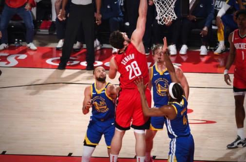 本场两队篮板延续了首场比赛(52:36)时的差距,此役火箭全队篮板47个,勇士为33个,其中申京(16)一人篮板比勇士首发五人(14)还要多。