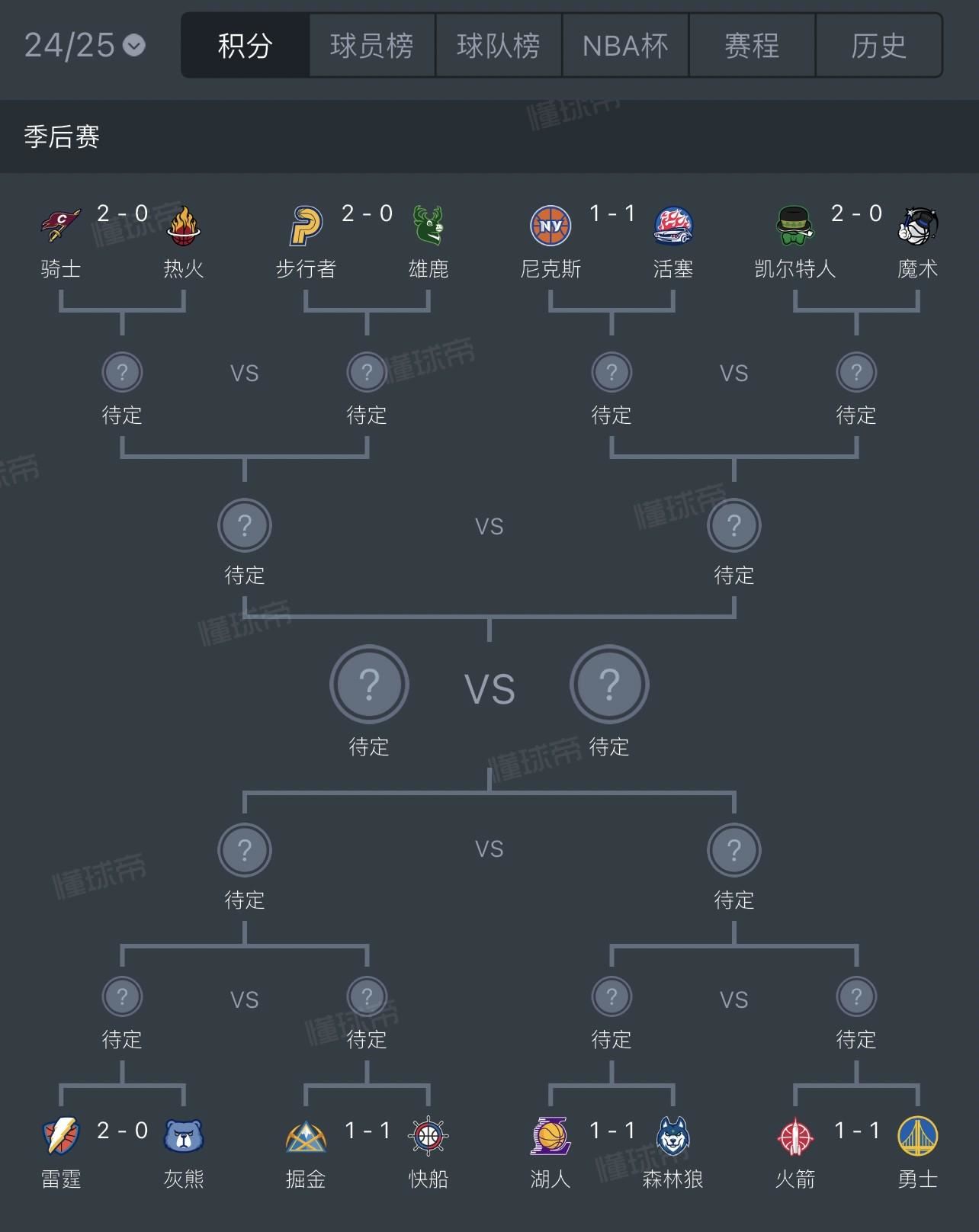 NBA季后赛首轮G2战罢:东部3个2-0,火勇、湖狼、掘船全1-1