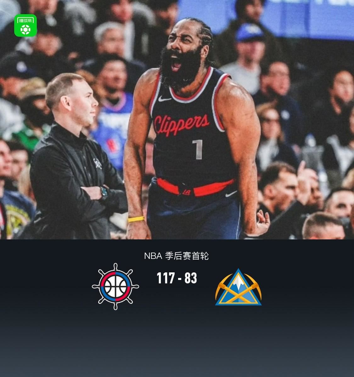 快船117-83大胜掘金大比分2-1领先,哈登20+6+9,约基奇三双
