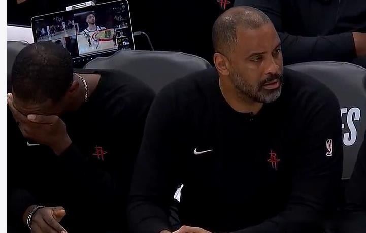最后一节决战,开局范福利特在场下休息,申京连续两个回合强攻篮下没进,库里连得5分,勇士队一下子将领先优势扩大到13分,火箭队主教练马上叫了暂停。