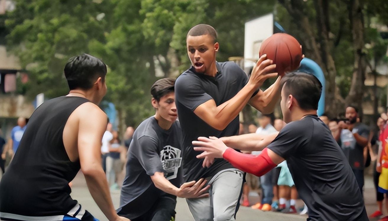 库里就是历史最强三分手,他用三分改变了篮球方式。在NBA库里身体优势不明显,也从来没人去关注库里身体,大家都是被他三分所折服。但是来到野球场,面对球迷挑战,库里身材就跟奥尼尔一样夸张。就是3人围剿,库里也落入无人之境,这差距确实大。