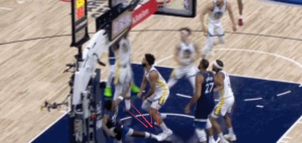 从现场慢镜头回放可以看到,爱德华兹上篮后落地时,勇士球员TJD起跳落地后,左脚刚好踩在了爱德华兹的左脚踝上。因为当时爱德华兹正处于倒地过程,整个左脚几乎是横着的状态。一边是身体倒地,一边是左脚被踩住,整个身体的拉伸,最终导致爱德华兹受伤。