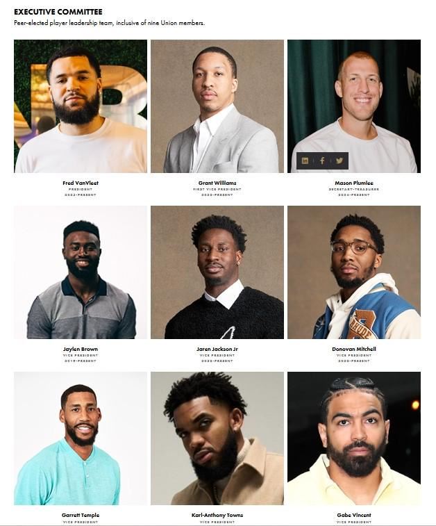 新一届NBA球员工会执委会成员:范弗利特领衔,布朗&唐斯在列