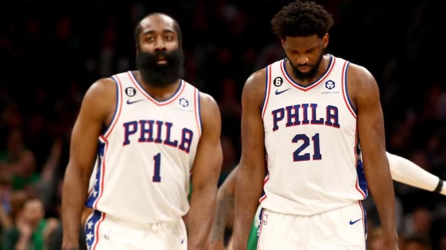 哈登在2021-22赛季中期被交易到76人队,他在76人队效力了一个半赛季,在2023年被交易到了快船队。在76人队效力期间,哈登与恩比德在两个赛季季后赛中都打到了东部半决赛,最终分别以2-4和3-4的比分不敌热火和凯尔特人。