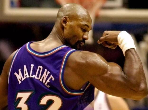 卡尔马龙“铁肘”闻名联盟,被他肘一下,估计人脑袋都要宕机几秒。他在内线鏖战19年几乎不伤,主要得益于这身肌肉,他肌肉很厚实,能有效把身体保护起来。看看这麒麟臂,真的比不少球员大腿都粗,被这样胳膊肘一下,那感觉肯定很酸爽。