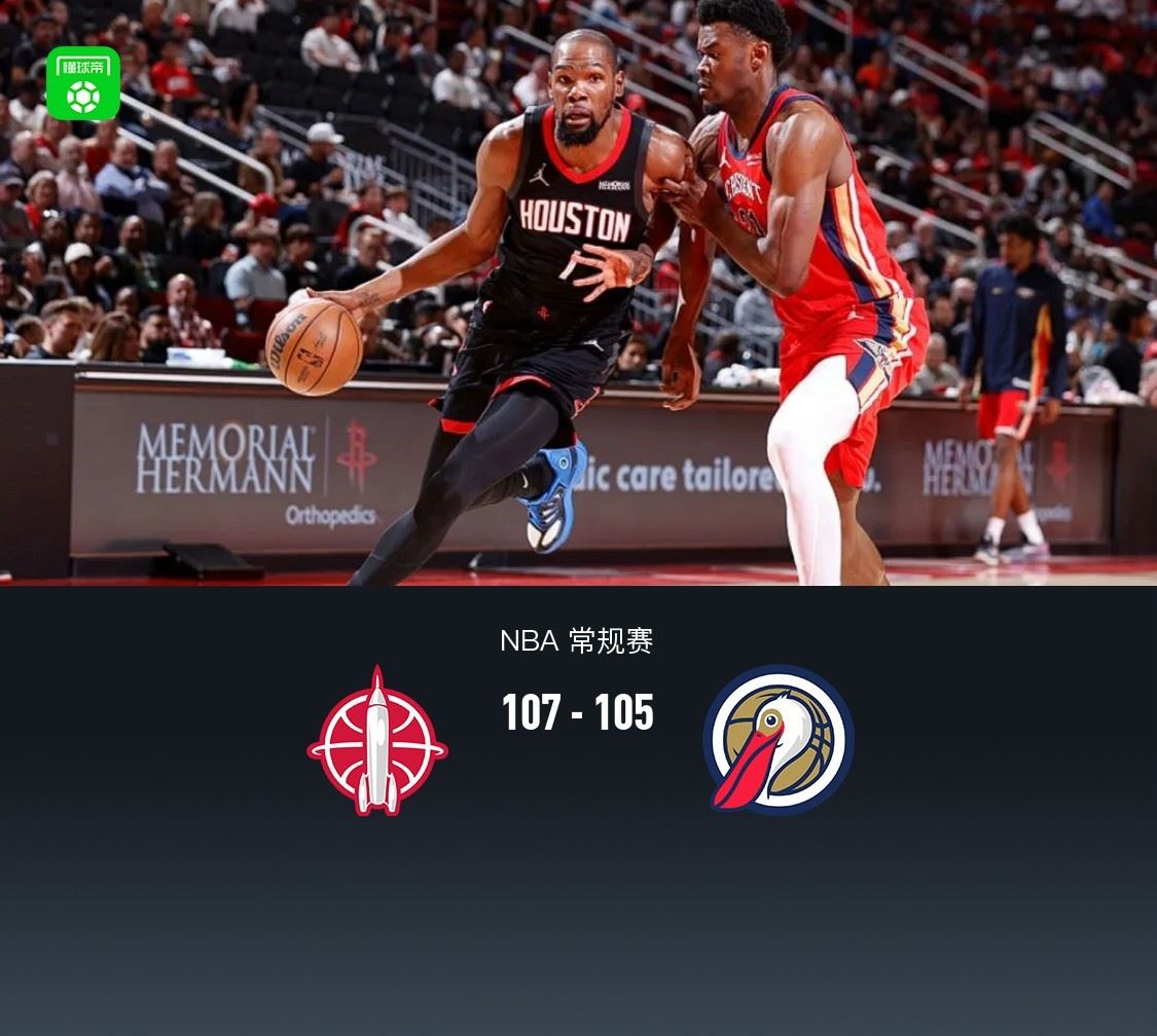 火箭107-105险胜鹈鹕,杜兰特32分准绝杀,穆雷35+7